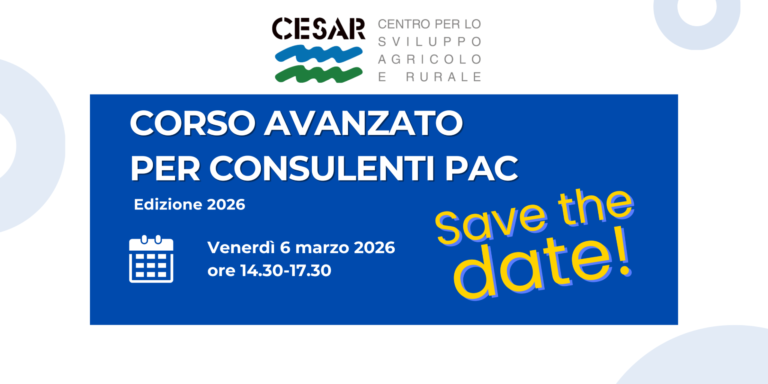 Venerdì 6 marzo 2026, dalle 14.30 alle 17.30, è in programma l’edizione 2026 del CORSO AVANZATO PER CONSULENTI SULLA PAC, on line su piattaforma ZOOM. A breve il programma dettagliato…
