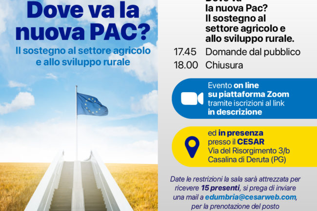 Continuano gli incontri di Europe Direct Umbria per parlare di fondi europei. Il 13 Settembre alle ore 17.00 il prof. Angelo Frascarelli ha parlato di PAC e scenari futuri. In allegato la presentazione.