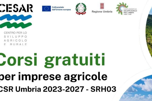 SONO APERTE LE ISCRIZIONI AI CORSI GRATUITI PER IMPRESE AGRICOLE proposti da CESAR da finanziare nell’ambito dell’intervento SRH03 -Formazione del CSR Umbria 2023-2027. Il CESAR sta implementando dei percorsi formativi pensati per le imprese agricole umbre, con contenuti pratici, aggiornati e utili per affrontare le sfide odierne, rivolti agli imprenditori e/o ai loro dipendenti,  e…
