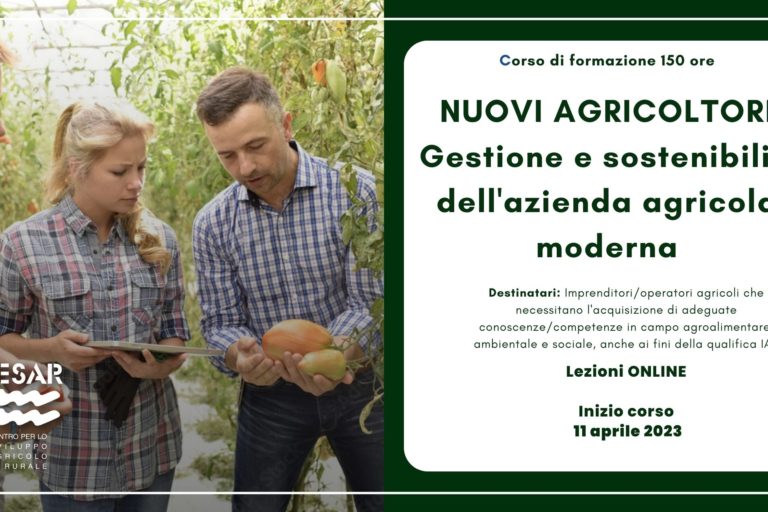 il CESAR, agenzia formativa accreditata dalla Regione Umbria ((ente accreditato con D.D n. 10758 del 27/11/2003, codice accredit00009) organizza il corso NUOVI AGRICOLTORI: tematiche legate…