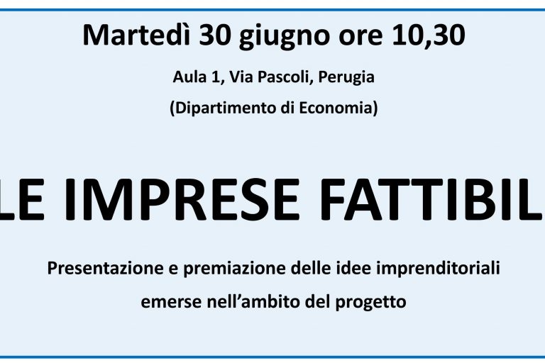 Martedì 30 giugno alle ore 10,30 presso l’Aula 1 del Dipartimento di Economia (Perugia), seminario conclusivo del progetto C.I.A.O. Creazione d’Impresa Azioni di Orientamento, sul…