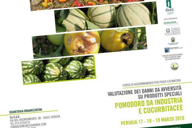 Corso di aggiornamento professionale periti estimatore danni, temi pomodoro da industria e cucurbitacee, tenuto a Perugia nei giorni 17-18-19 marzo 2016